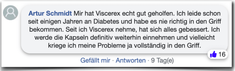 Wir fanden auf den verschiedenen gängigen Plattformen durchweg positive Viscerex Erfahrungen und Kundenbewertungen. Die meisten Anwender konnten mit der Einnahme ihre Blutwerte zu optimieren. Dadurch gelang es ihnen, ihre Beschwerden zu lindern und ihre Lebensqualität deutlich zu verbessern.